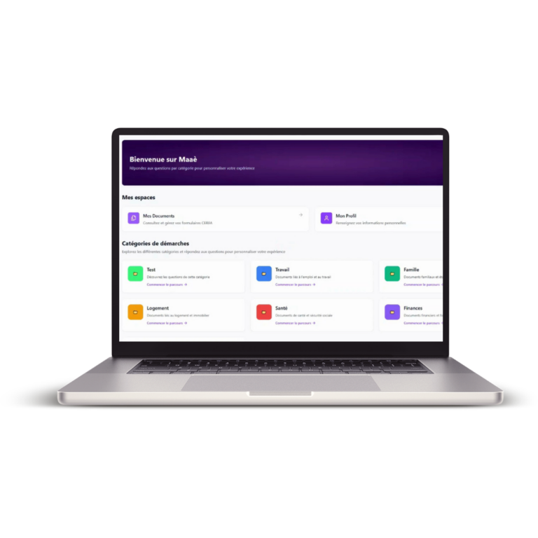 Nous avons développé la technologie au cœur de l’application métier MAAÈ, une solution conçue pour faciliter les démarches administratives des citoyens. Notre moteur d’intelligence artificielle permet, à partir d’une seule saisie, de compléter automatiquement plusieurs formulaires, notamment les dossiers CERFA et les demandes d’aides.